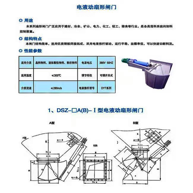 扇形閘門廣泛應(yīng)用于建材、冶金、礦山、化工、電力等行業(yè),是各類落料系統(tǒng)的控制裝置。結(jié)構(gòu)特點(diǎn): 結(jié)構(gòu)簡單,由優(yōu)質(zhì)鋼板焊接而成,具有開啟靈活、無卡阻等特點(diǎn)。