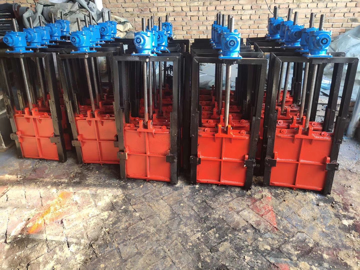 9.PZ機閘一體式鑄鐵閘門正常使用水頭1-6米,還可承受一定的反向水頭,為滿足用戶要求,可制造高水頭閘門。 11.PZ機閘一體式鑄鐵閘門在澆注混凝土時,流進閘板、閘框、斜鐵、擋板間隙中的灰漿必須清除,防止灰漿凝固后影響閘門啟閉。