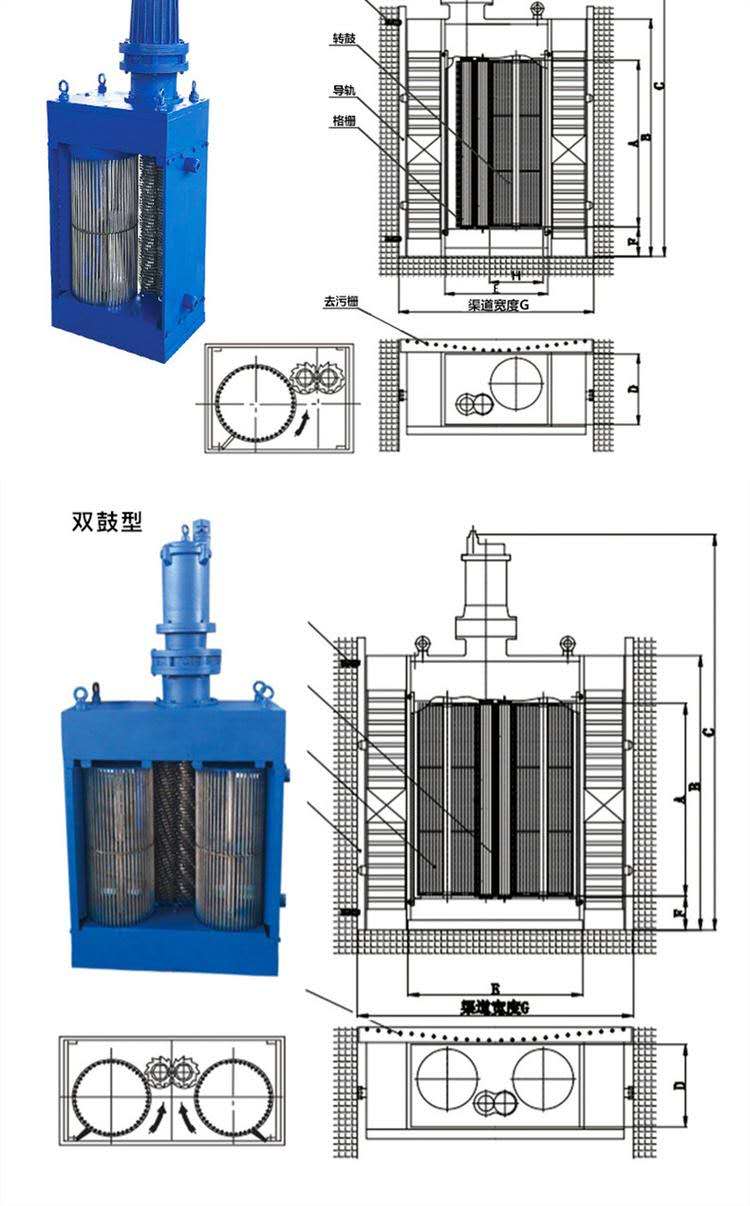 粉碎型格柵由干濕兩用防爆電機(jī)、變速箱、變速器、刀片、立式滾筒、密封、安裝支架、溢流格柵、潛水電纜、備用手動(dòng)格柵等組成的粉碎格柵清洗機(jī)。電機(jī)啟動(dòng)后,葉片和立式滾筒以不同的速度旋轉(zhuǎn),污水進(jìn)入滾筒區(qū)并送到切割區(qū)后,旋轉(zhuǎn)柵格截取污水中的固體浮物。采用差動(dòng)旋轉(zhuǎn)的兩組葉片在軸向和徑向快速切割。它被粉碎成6~10 mm的小顆粒,大部分其他污水和足夠小的顆粒直接通過(guò)滾筒區(qū)域,破碎后的小顆粒隨著水泵的抽水而流動(dòng)。