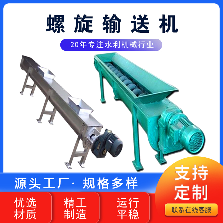 螺旋輸送機(jī)在輸送形式上分為有軸螺旋輸送機(jī)和無軸螺旋輸送機(jī)兩種,在外型上分為U型螺旋輸送機(jī)和管式螺旋輸送機(jī)。有軸螺旋輸送機(jī)適用于無粘性的干粉物料和小顆粒物料.(例如:水泥、粉煤灰、石灰、糧等)而無軸螺旋輸送機(jī)適合輸送機(jī)由粘性的和易纏繞的物料。(例如:污泥、生物質(zhì)、垃圾等)螺旋輸送機(jī)的工作原理是旋轉(zhuǎn)的螺旋葉片將物料推移而進(jìn)行螺旋輸送機(jī)輸送,使物料不與螺旋輸送機(jī)葉片一起旋轉(zhuǎn)的力是物料自身重量和螺旋輸送機(jī)機(jī)殼對物料的摩擦阻力。螺旋輸送機(jī)旋轉(zhuǎn)軸上焊的螺旋葉片,葉片的面型根據(jù)輸送物料的不同有實(shí)體面型、帶式面型、葉片面型等型式。