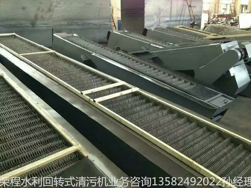 格柵除污機(jī):由一種獨特的耙齒裝配成一組回轉(zhuǎn)鏈,在電機(jī)減速器的轉(zhuǎn)動下經(jīng),鏈輪傳動驅(qū)耙齒鏈,進(jìn)行回轉(zhuǎn)運動;耙齒鏈的下部浸沒于排水溝槽中,當(dāng)耙齒按工作方向運動時,每排橫軸耙齒即把液體中的固態(tài)顆;蚍Q雜物,從液體中分離出來;按水流方向耙齒鏈類同于網(wǎng)柵,在耙齒鏈橫軸上裝配的柵隙可以根據(jù)不同條件進(jìn)行選擇,當(dāng)耙齒鏈反流體中的固態(tài)物質(zhì)分離后可以保證水流暢通流過,整個工作過程是連續(xù)的。